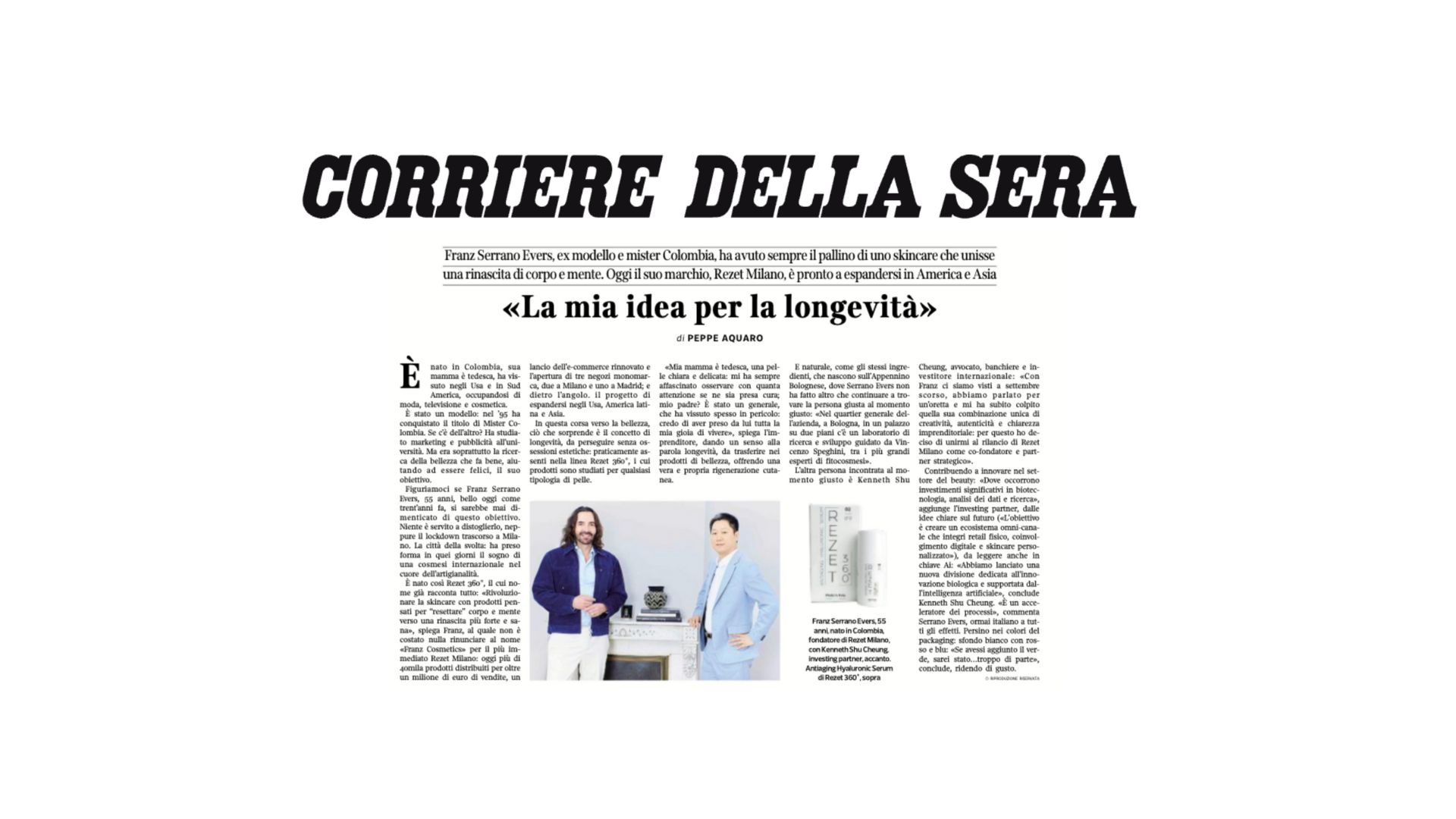 Il quotidiano più influente d’Italia ha dedicato il suo speciale Beauty a un’intervista esclusiva con il nostro fondatore, Franz Serrano, che racconta l’essenza di Rezet Milano: un brand